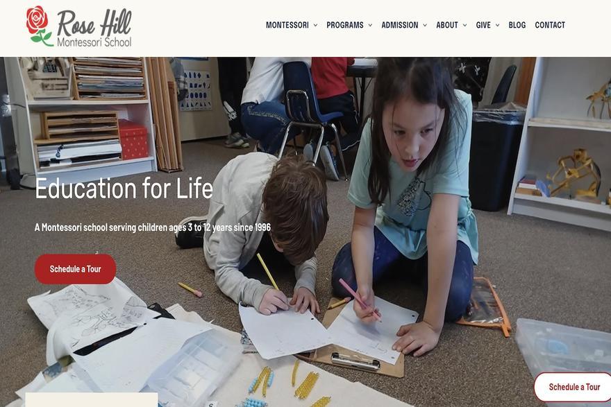 Our web team worked closely with the Rose Hill Montessori team to build and develop a new school website with content, automations, and purposeful design and imagery. Let's take a look at the new homepage: