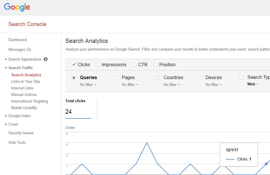 You’ll find Search Analytics under Search Traffic from the main dashboard, and from here you can see: