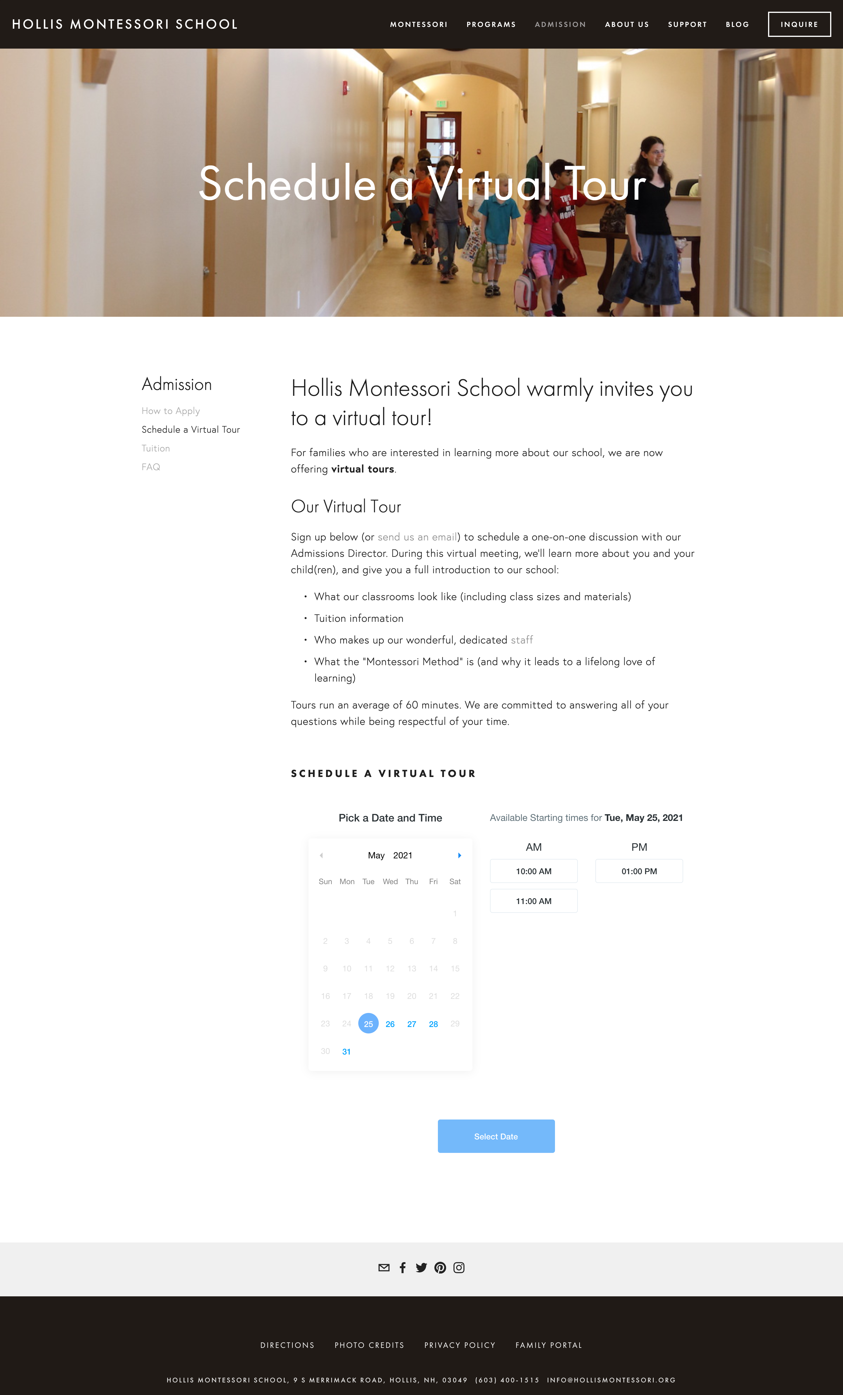 With the tour scheduling automation, Hollis Montessori experienced an increase in tours!