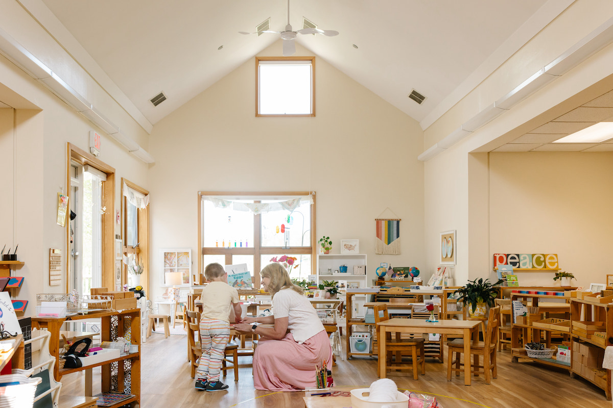 The Montessori School of Lake Forest has many rooftops and long hallways. When the school was designed in 1989, discussions between members of the board, faculty, and students led to creating “a house within a school.” Specifically designed from the viewpoint of a child, and according to Dr. Montessori’s philosophy, the “miniature home” of each classroom includes an exterior patio and garden. They put a lot of hard work into their environments and programs and provide all families enrolled in their school with high quality and authentic Montessori programs.