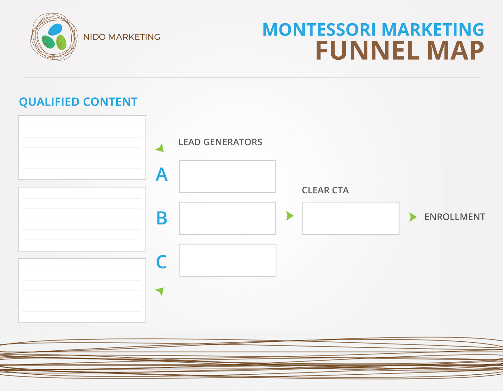 Above is our Montessori Marketing Funnel Map, which breaks down the typical journey of an online visitor.