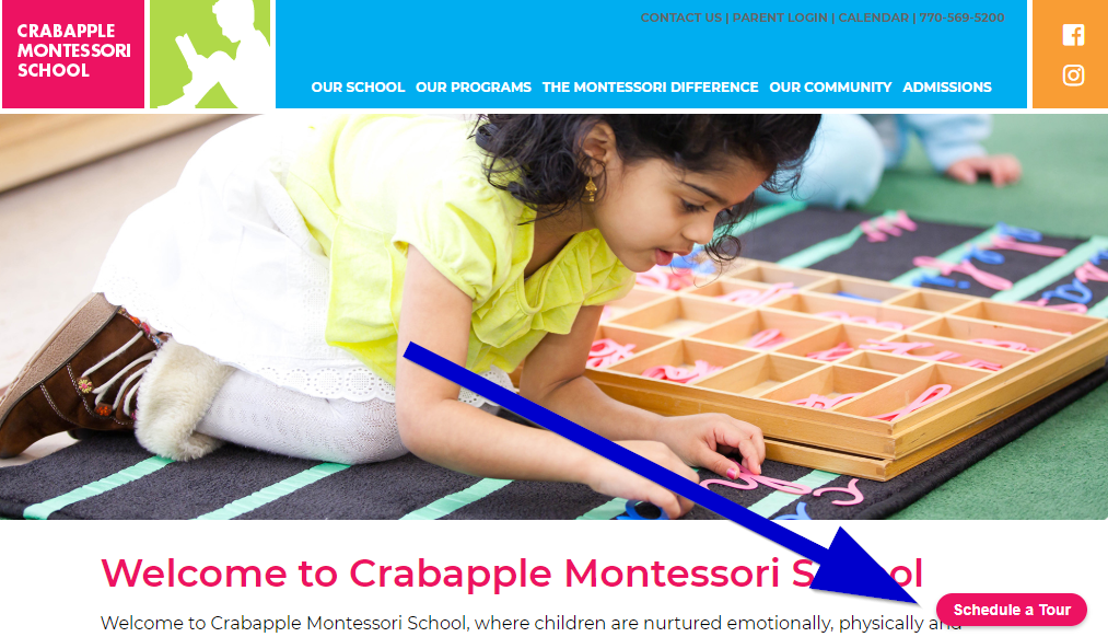 The CTA is clear, relevant, and interesting for parents who may not be sure if the Montessori method is right for their child.