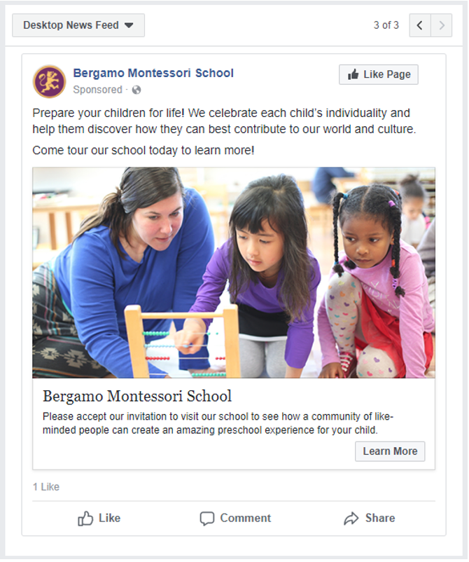By connecting with your target audience, a single, well-thought-out ad can go a long way toward driving enrollment by encouraging potential families to schedule a tour and experience first-hand the Montessori difference.